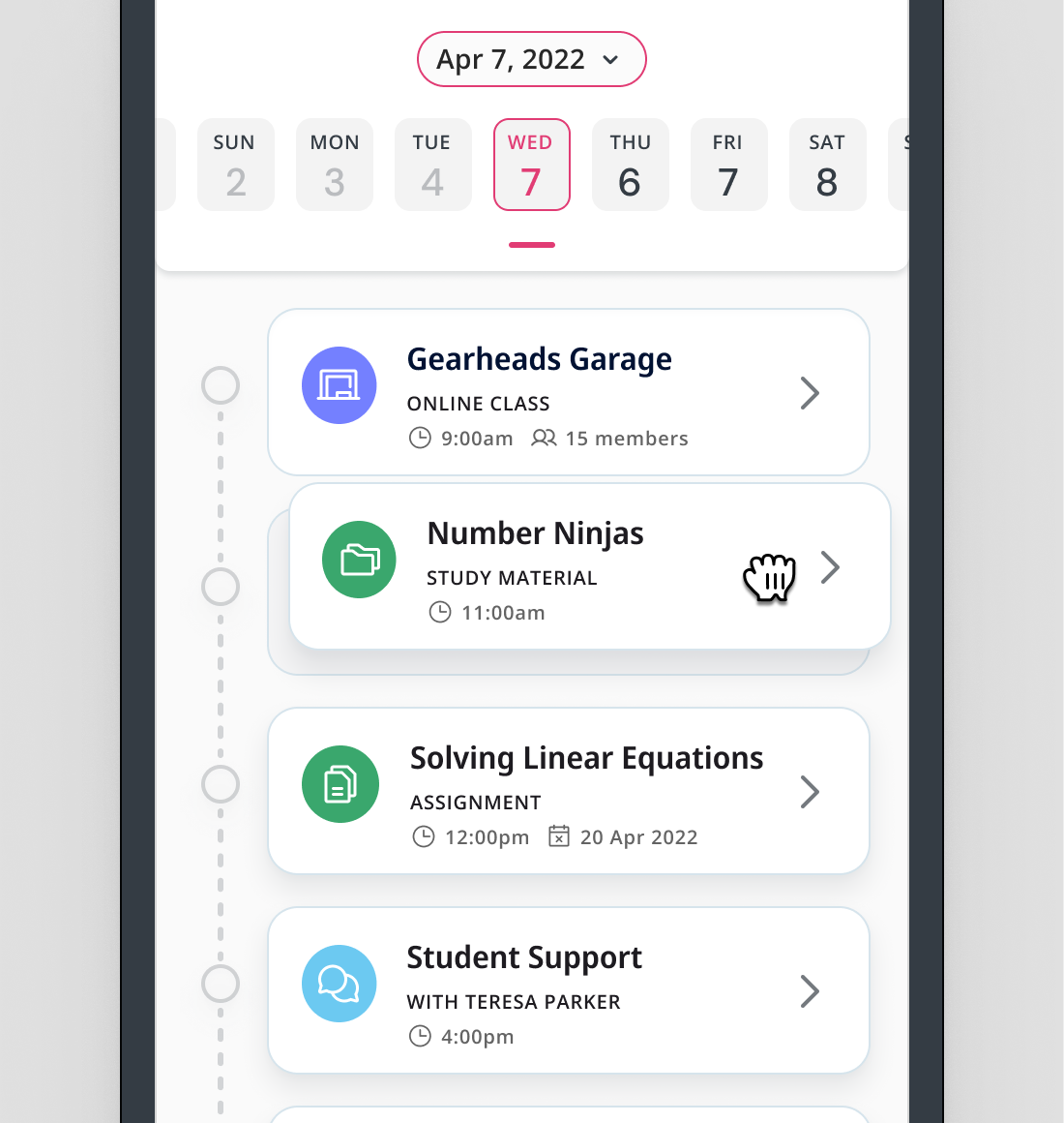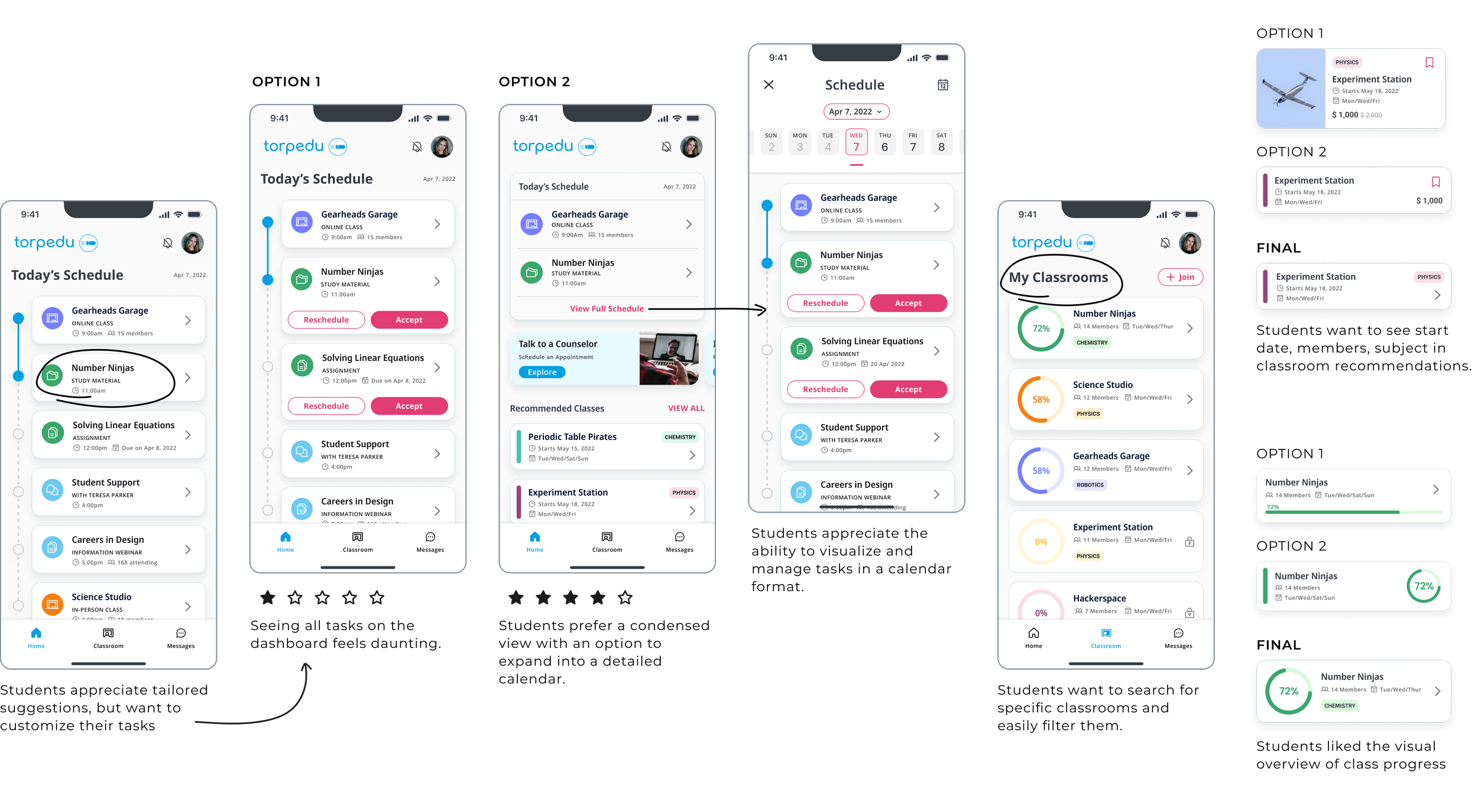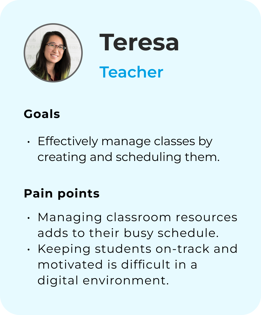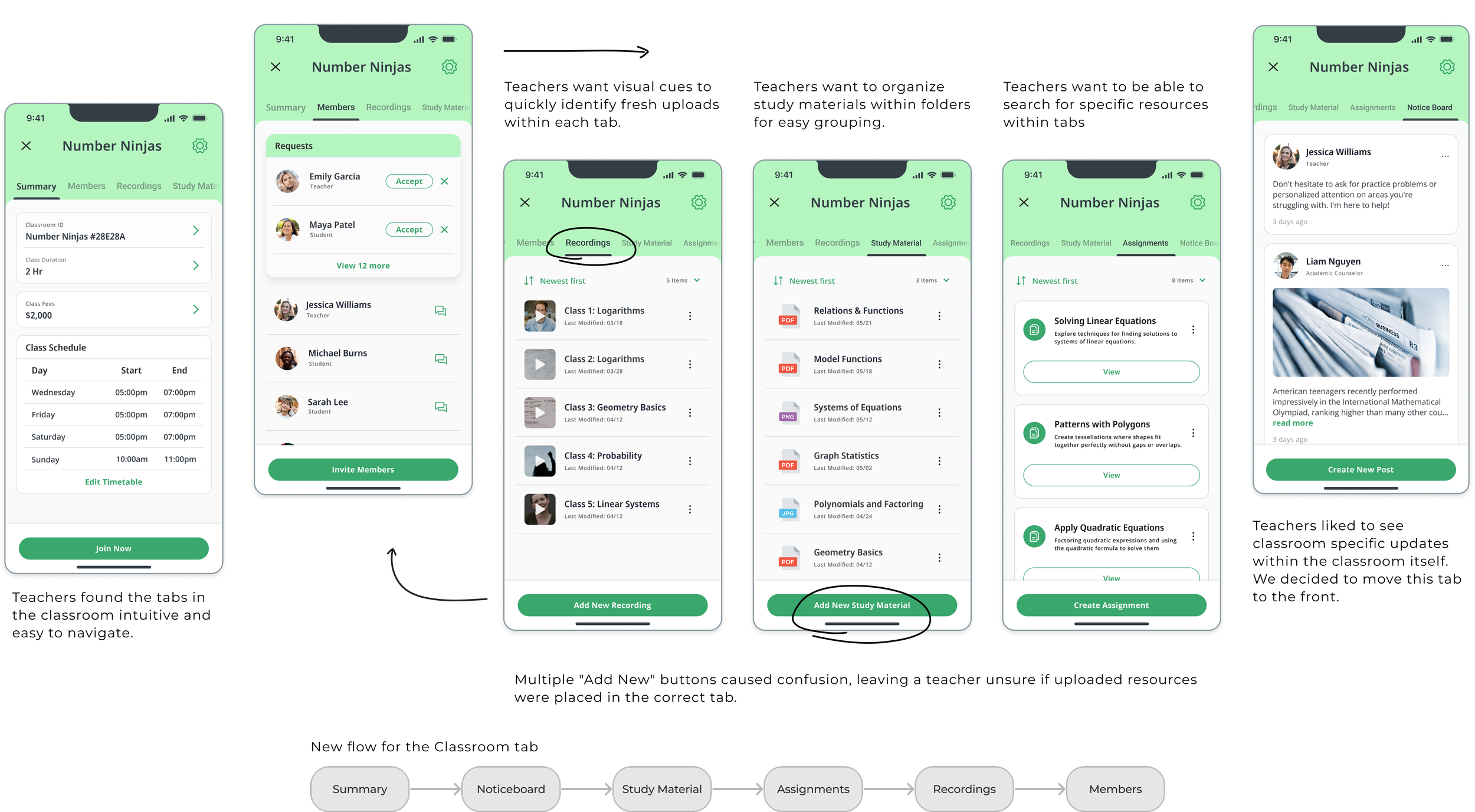 The Classroom brings together class schedules, deadlines, and materials in one seamless experience. By testing the classroom flow with teachers, we aimed to gather diverse perspectives and address pain points specific to them.