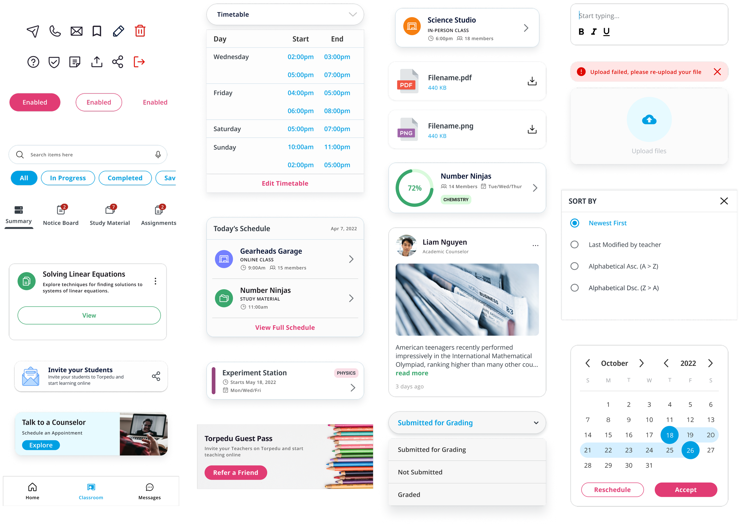 Leveraging the existing brand identity, I designed an accessible design system for the virtual classroom app with consistent visual elements like color palettes, typography, and icons.